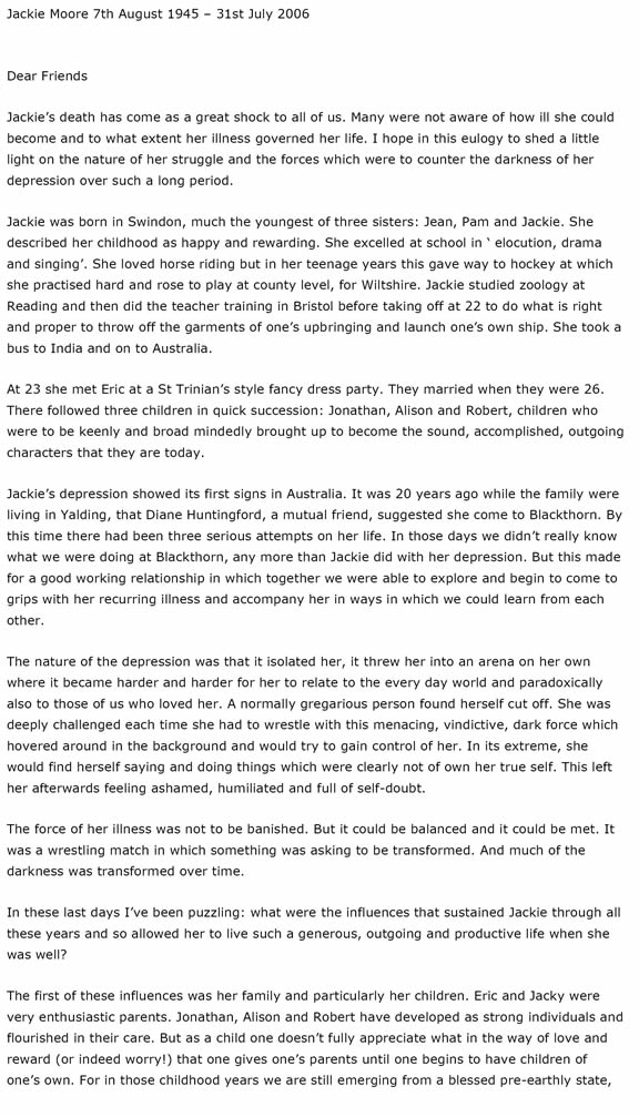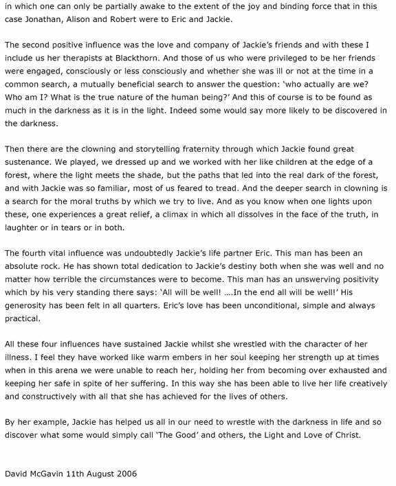 at the Blackthorn Trust Medical Centre in Maidstone where she inspired